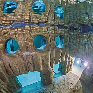 São diversas áreas, plataformas e cavernas, num cenário dos sonhos para qualquer mergulhador de cilindro treinar suas habilidades e passear na água deliciosamente termal, a qual dispensa roupa de neoprene. São 4300 metros cúbicos de água termal, que é mantida a uma temperatura entre 32 e 34 °C.